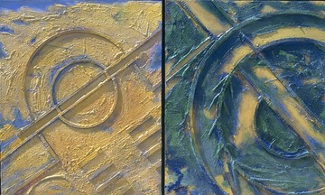 Pasta, látex, arena, polvo de mármol, cartón/ lienzo. 73 x 120 cm. 1988,  Colección Prensa Canaria, Las Palmas